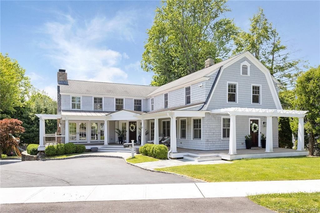 Welcome to this luxurious five-bedroom home located in the highly sought after in-town neighborhood of New Canaan. A fully updated home at almost 6,000 sqft. This stunning abode is an oasis of elegance! Just steps to top-rated schools and walkable to the train & town center, allowing you to have everyday conveniences at your fingertips. Entering the home, you'll be greeted by herringbone hardwood flooring in the foyer, setting the tone for the airy modern coastal vibes throughout. Pass by the formal living room opening to the wrap-around deck along the home's main level which seamlessly integrates indoor & outdoor living. The nearby family room, with a fireplace & access to the deck, opens to the pristine chef's kitchen which boasts an oversized island with stone waterfall counters, high-end appliances, & an elegant tile backsplash. Host dinner parties year-round in the adjoining formal dining room with wainscoting or work peacefully from home in the private office. The backyard features a patio & mature landscaping providing a private oasis for entertaining guests or enjoying a quiet evening at home. Further entertainment space can be found in the lower level with a home gym, playroom and rec room. End your day within the breathtaking second-level main suite featuring a walk-in closet and ensuite bath, in addition to three other bedrooms nearby. Natural Gas, City Sewer/Water. Private Elevator. Over $500k+ of upgrades! A lifestyle of ease & luxury awaits you in New Canaan!