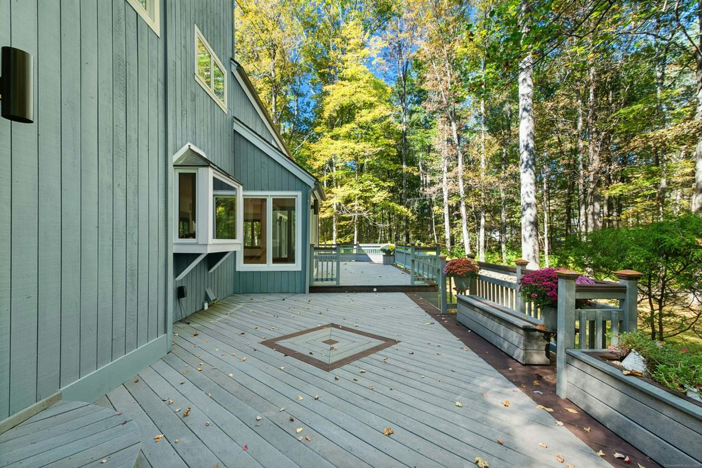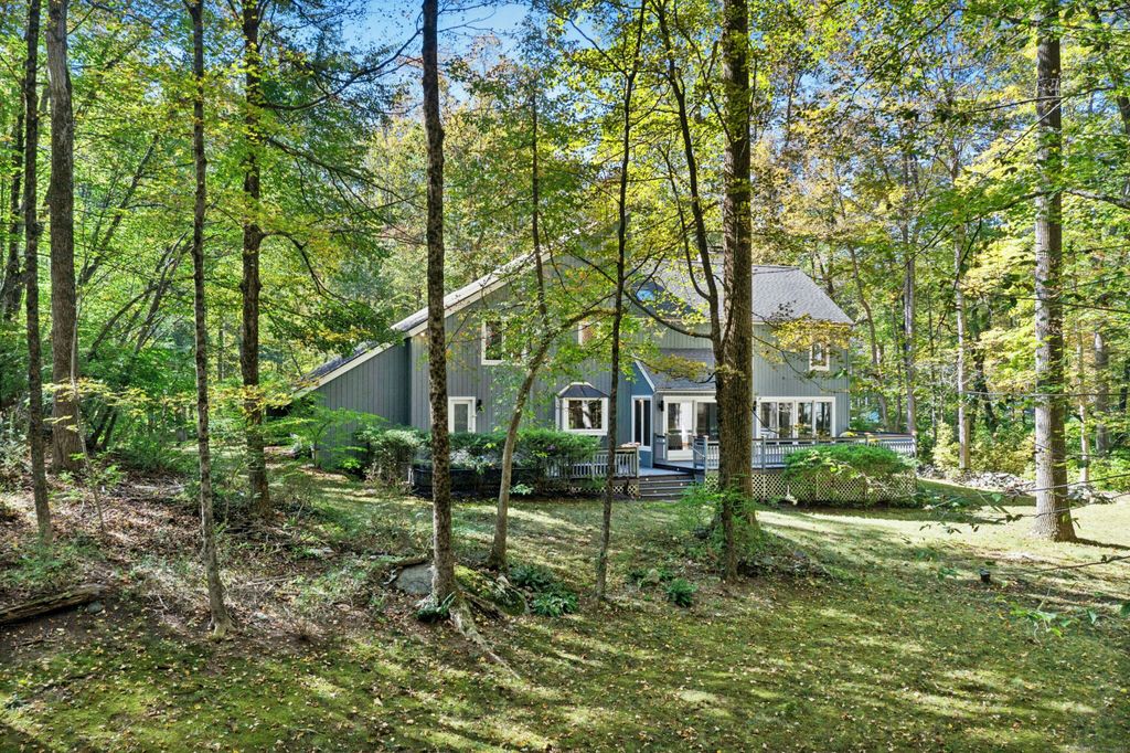 This Contemporary-style home offers space, privacy, and a peaceful connection to nature. With 3,080 square feet of thoughtfully designed living space, this 4-bedroom, 2.5-bath home combines modern comfort with a warm, open feel. The dramatic two-story foyer, cathedral ceilings and lots of large windows welcomes you with natural light and a feeling of openness, perfect for both everyday living and entertaining. The updated kitchen features generous workspace, granite counters, center island, Miele stainless steel appliances and a seamless flow to the dining and living areas. Each room feels spacious and inviting, offering plenty of flexibility for your lifestyle. Step outside to an expansive, two-level Trex floored deck with built-in planters and benches offering a perfect spot for morning coffee, gatherings with friends, or simply taking in the tranquility. Complete with a 2-car attached garage, this home is sited on 2.31 acres and tucked well back from the road by a long, gravel driveway with plenty of parking spaces for guests. Across the street, conservation land with scenic trails invites you to explore the outdoors right from your doorstep. Recent upgrades that add to the home's comfort & reliability include New Miele dishwasher (2025), New ice maker (2025), Freshly painted interior (2025), Refinished main-level hdwd floors (2025, 2022), New well tank (2025), New well pump (2025), New central air conditioning system (2023), New washer & dryer (2021). See Virtual Tour!