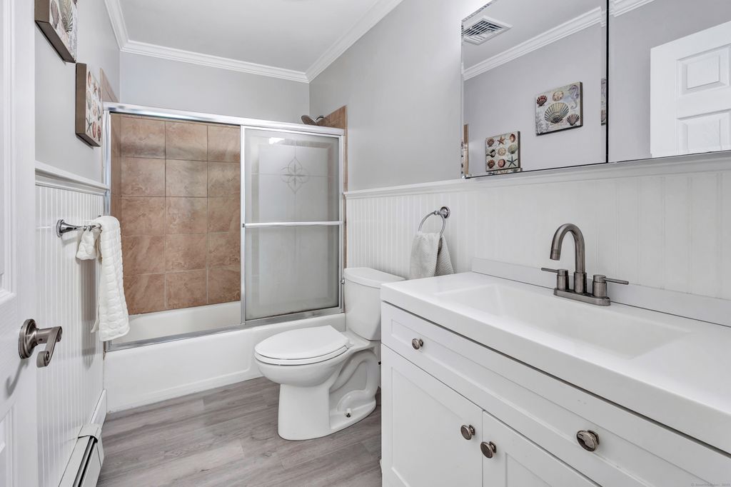 Discover the charm of lakeside living at Pinewood Lake! This beautifully updated raised ranch offers seasonal water views of the lake and an optional Pinewood Lake Association membership w/year-round activities. Offering 2,038 SF ft of living space, this 3-bedroom, 2.5-bath home is perfect for those seeking both comfort & convenience. Step inside to find an inviting layout with beautiful hardwood floors. Enjoy lake views from the spacious living room, while the kitchen opens to an amazing 1,000 sq ft stone patio w/brick pavers & an outdoor fireplace ideal for relaxing or entertaining. The kitchen is fully outfitted w/modern appliances, including double ovens, an induction cooktop, & breakfast bar, making it a dream for anyone who loves to cook. The primary bedroom features custom-built storage & an ensuite bathroom with a double shower & quartz vanity. On the lower level, you'll find a comfy space with wood paneling, a fireplace, built-in bar & wine chiller, and an additional half bath & laundry area. Recent updates include central air, newer windows, and a Smart Home system for added convenience. The home also features a large two-car garage with extra storage. For those who enjoy lake activities, as a tenant you have the option of becoming a member of the Pinewood Lake Association with access to Pinewood Lake. Your membership is optional but gives you access to swimming, fishing, boating, & a renovated clubhouse w/year round social events & activities for your whole family.