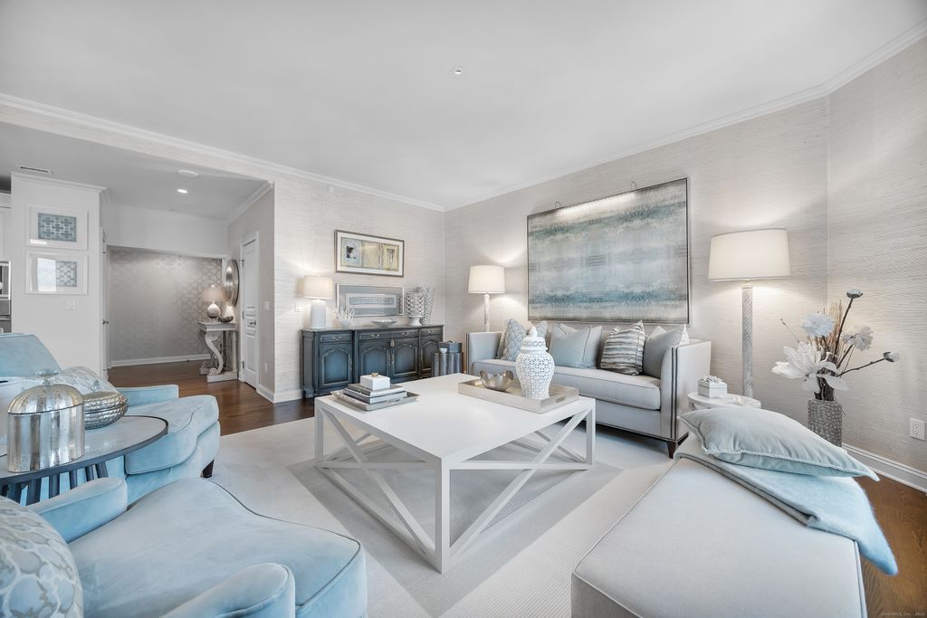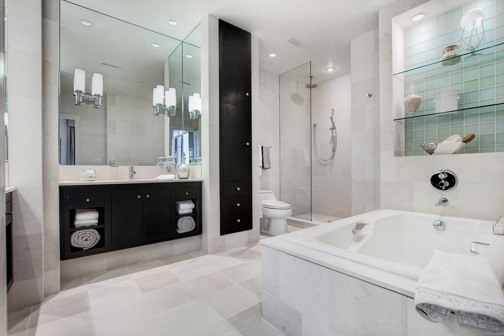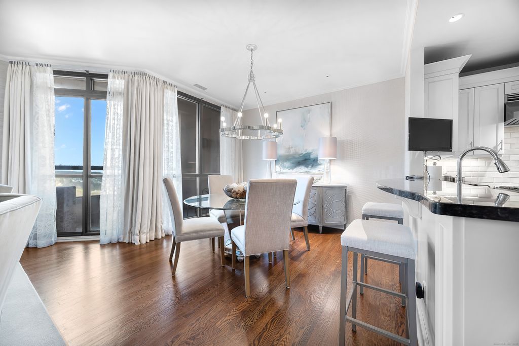 A rare opportunity to live in one of the most distinguished residences within The Renaissance, Shelton's premier luxury high-rise. This exquisite end-unit, Manhattan-inspired condo offers over 2,200 sq ft of elegant living with 2 bedrooms, 2 full baths, a private den, and a sweeping 180 unobstructed panoramic vista through floor-to-ceiling glass. The gourmet kitchen features custom cabinetry, granite counters, breakfast bar, professional-grade stainless appliances, and walk-in pantry, opening to a spacious living/dining area ideal for entertaining. A private terrace captures sunrise views and abundant natural light. Down the hall, pocket doors lead to a serene den with modern fireplace, mirrored accent wall, and dramatic windows overlooking Long Island Sound. The primary suite includes a custom walk-in closet and spa-like bath with dual vanities, soaking tub, and glass shower. The 2nd bedroom with walk-in closet and adjacent full bath offers refined guest accommodations. Residents enjoy top-tier amenities: rooftop pool, gym, sauna, massage suite, meeting room, lounge, grills, dry-clean service, and 24-hour concierge and security. Benefits extend into Corporate Park with cafes, gym, yoga, EV charging, tennis, pickleball, basketball, daycare, and more. Minutes to I-95, Merritt Parkway, Routes 8 & 25, and Shelton's thriving dining scene-with Trader Joe's opening soon downstairs. Also available fully furnished-see MLS number 24142026