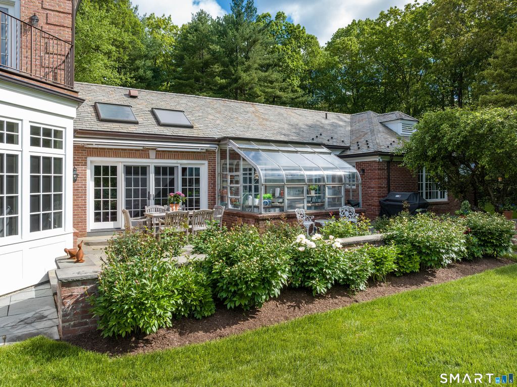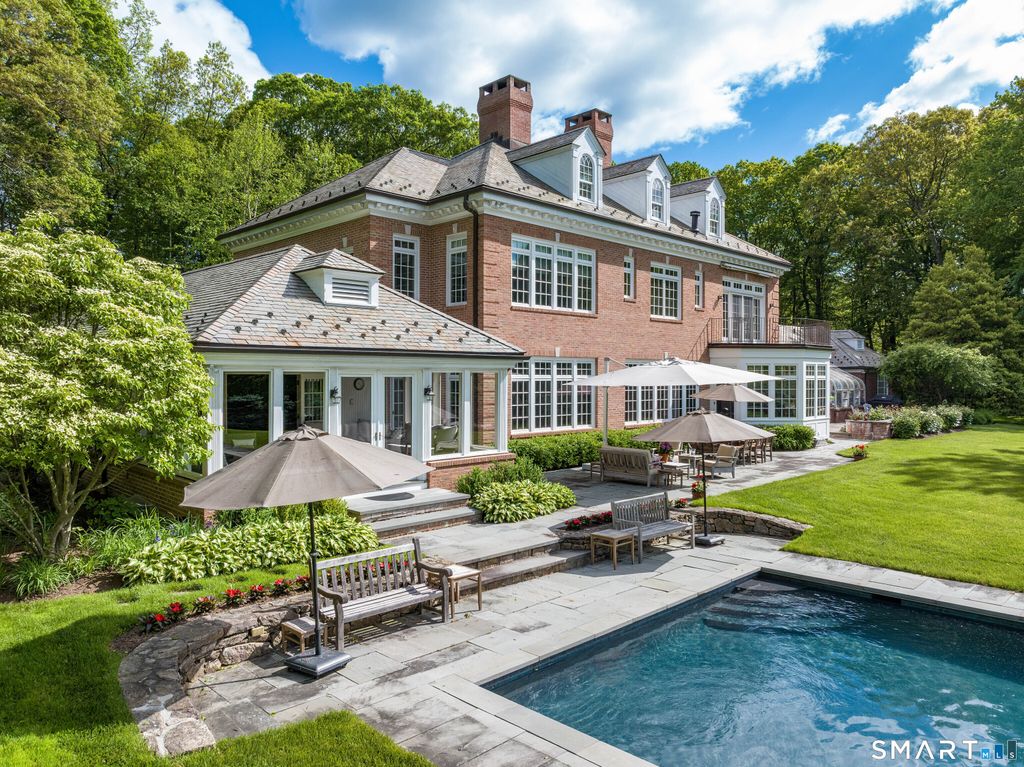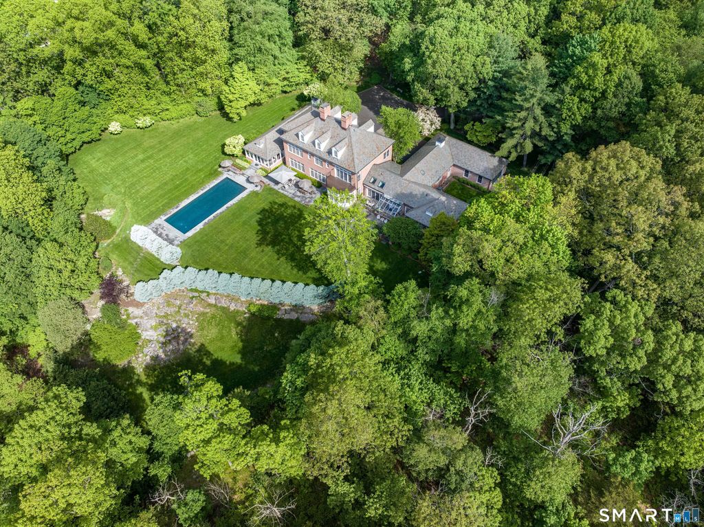 Elevated luxury. Prime location. Unmatched privacy. Scenic views. Discover the pinnacle of privacy and sophisticated living in this magnificent Brick Georgian Colonial. Poised at the end of a private Lane with gated entry high atop 3.8 professionally landscaped acres, this estate is a rare nature sanctuary just minutes from the heart of town. Exceptional Craftsmanship: Built to endure, this steel-reinforced residence features a classic brick exterior and a 100-year slate roof. Inside, the 7,300 SF floor plan is grand and light-filled, offering a flexible layout perfect for a multi-generational lifestyle. Soaring 10-foot ceilings define the spacious interiors, which include 6 generous en-suite bedrooms and 3 dedicated home offices and a library designed for the modern professional. Outdoor Oasis: The park-like grounds are anchored by a 50' x 20' heated pool with an electric cover and a professional-grade greenhouse-perfect for year-round horticultural pursuits. Utility & Security: Every convenience is considered, featuring a 5-car heated garage and a full-house automatic generator for seamless, year-round comfort and peace of mind. Unrivaled Location: Experience the serenity of a private retreat with the convenient sought after neighborhood location.