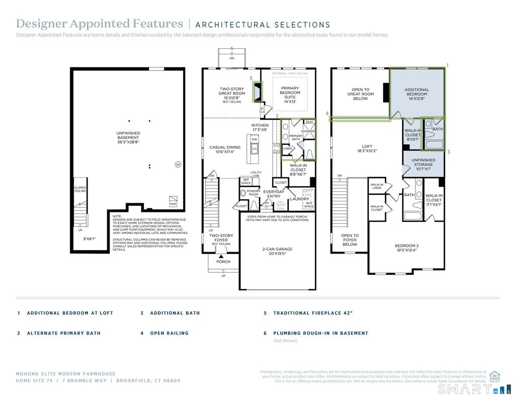 Welcome to the Mohonk Elite, a thoughtfully designed home showcasing an impressive two-story foyer that opens to the casual dining area and expansive great room with seamless access to the rear yard, ideal for both everyday living and entertaining. The well-appointed kitchen features a large center island with breakfast bar, abundant counter space, and ample cabinetry. The primary bedroom suite offers a relaxing retreat with a spacious walk-in closet and a refined primary bath complete with dual-sink vanity, luxe shower with seat, linen storage, and a private water closet. Upstairs, a generous loft overlooks the foyer and is complemented by an adjacent unfinished storage area. The secondary bedroom is generously sized with two walk-in closets and access to a shared hall bath with dual-sink vanity. Additional highlights include a sophisticated open-rail staircase enhancing the architectural appeal of the foyer, premium 7-inch Shaw hardwood flooring throughout the first floor, a convenient powder room and everyday entry, easily accessible laundry, and abundant storage throughout. This Quick Move-In home is scheduled for Spring 2026 and includes HOA-maintained landscaping and snow removal, offering a low-maintenance lifestyle designed for effortless living.