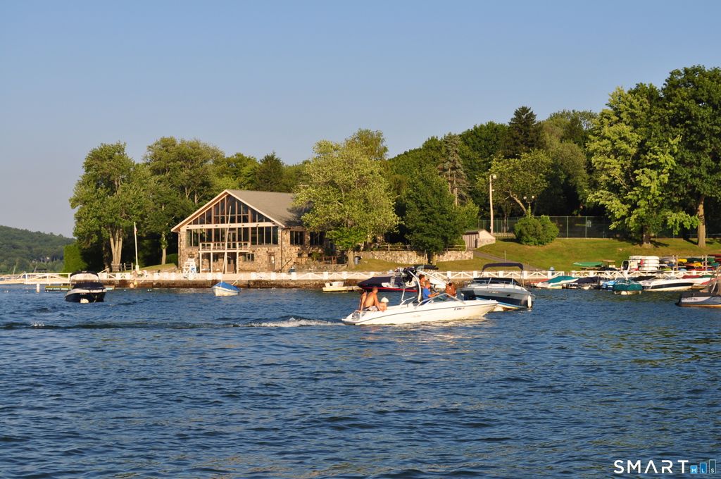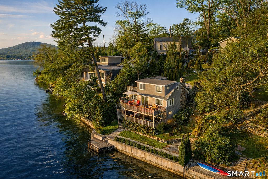 Candlewood Isle showcases this unique waterfront opportunity! Renovated 3 BR, 3 Bath direct waterfront with charming outdoor spaces and panoramic lake views to the east, north & south. A private oasis for the lake lover with a balcony off primary suite & double decks overlooking the lake. A spacious great room with sliders to the main deck offers an eat in kitchen plus dining room and open views through window walls viewing the lake. ideal for entertaining & summer BBQ's indoors to out. The second floor has a private primary bedroom with balcony and newer full bath, king size accommodations with room for multiple beds, as well as an office /desk area and built ins. The lower level offers a slider to the covered deck, useable even in rainy weather. A comfortable family room, 2 spacious bedrooms & a renovated guest bath complete this lakeside retreat. In addition to the multiple decks, wonderful outdoor spaces allow for dining, sunbathing and just relaxing at the lakeside patio. New concrete and bluestone walkways with iron rails, paved driveway to accommodate golf carts and a spacious 2 car garage at street level for storage adjacent to an additional paved driveway. Available turn key for your lake enjoyment! A great opportunity for waterfront at an affordable price in this premier lake community with clubhouse, tennis, sand beach, basketball, summer camp and more! Dreaming of Lake Living, Don't Miss It!