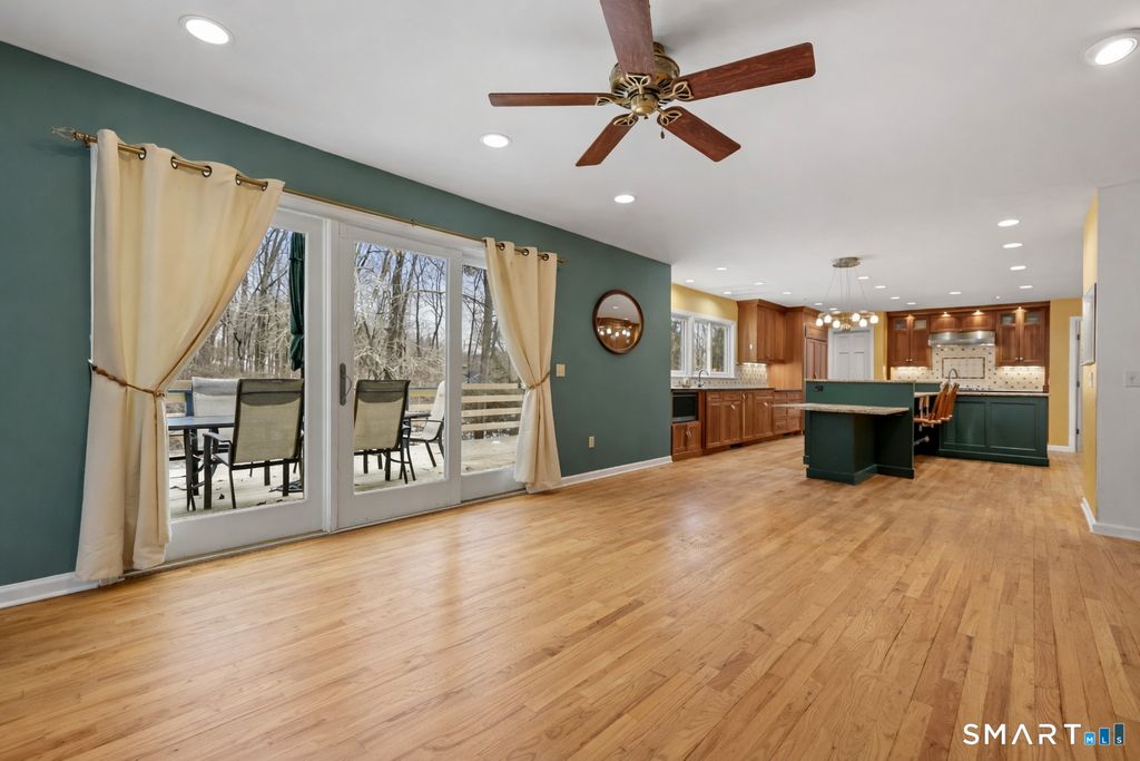 Nestled on 2.02 private acres in Wilton, this spacious 4-bedroom, 4-bath home offers a thoughtful layout designed for both everyday living and entertaining. The great room with vaulted ceiling and fireplace creates an impressive central gathering space filled with natural light, while the formal dining room with French doors and built-ins adds classic detail. The large open kitchen features a walk-in pantry, breakfast bar, and pastry counter, and opens directly to a family room with fireplace, creating a warm and inviting space for casual living. From the family room, step out to a large deck overlooking peaceful woodlands, ideal for outdoor dining and relaxing in a private natural setting. The first-floor primary suite provides convenience and privacy. The second level includes a den with extra-height ceilings and built-ins, along with three additional bedrooms and a hall bath. Additional highlights include hardwood flooring, a walk-out finished lower level offering flexible living space for recreation, gym, or media room, an office, and an attached three-car garage. Set on over two acres, this property offers space, privacy, and a desirable Wilton lifestyle.