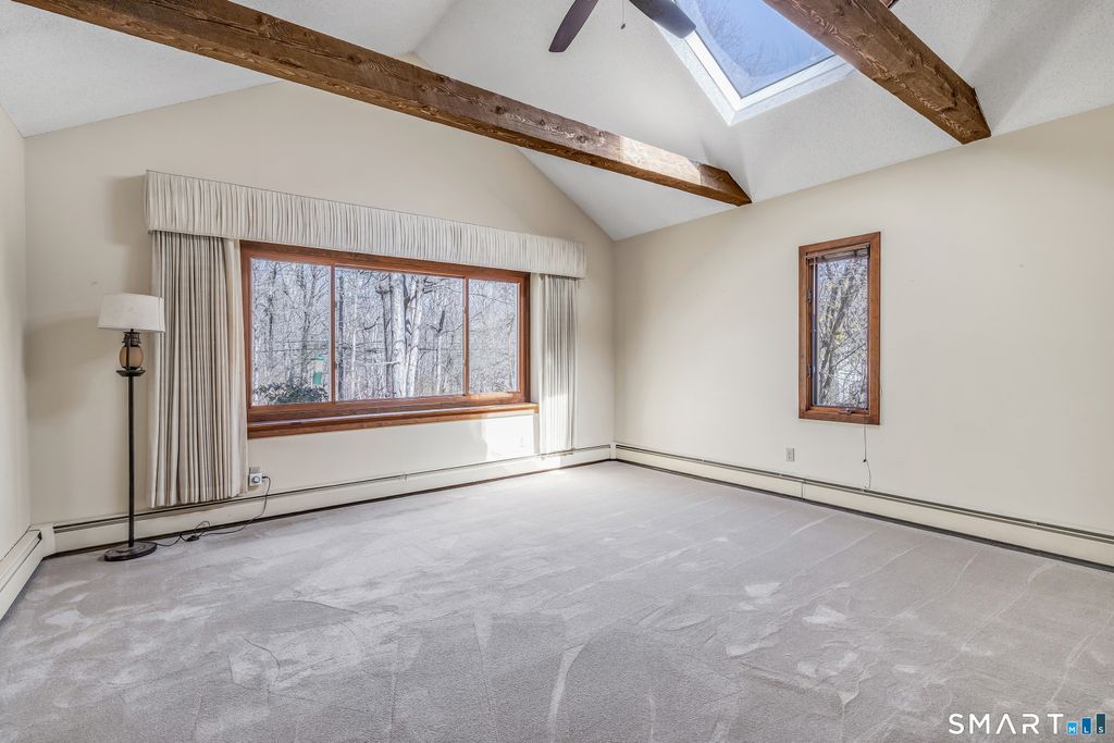 Spacious and airy! 3 Bedroom, 1.5 Bath Split Level Home located in the coveted Long Hill Area. This home is situated on a private .53 acres of property. Featuring a magnificent Living Room with cathedral ceilings, skylight, wood beams, and floor to ceiling fireplace with super cozy pellet stove. Eat-in kitchen with hardwood floors, breakfast bar, huge pantry, skylight and convenient laundry area. The sunroom is boasting with light from the energy efficient Anderson Windows and skylights, truly enjoy this room.. starring hard wood flooring with sliding doors to the huge exterior deck, it awaits your entertaining and those BBQs right around the corner. The full bath was recently updated with fresh paint and custom tiled shower. The 3 Bedrooms are generous in size, with plenty of closet space. Huge 2 Car Garage with work bench, an abundance of shelving and plenty of storage. Come add your personal touches and make this your home. It is just waiting for those cherished memories to be uncovered. This home is energy efficient with its brand new natural gas boiler, installed in March of 2026 and a economic solar panel contract. Come see the convenience and close proximity of the Long Hill Green, the spectacular Rail Trails, shops, eateries and major commuting routes. Schedule a Showing Today!