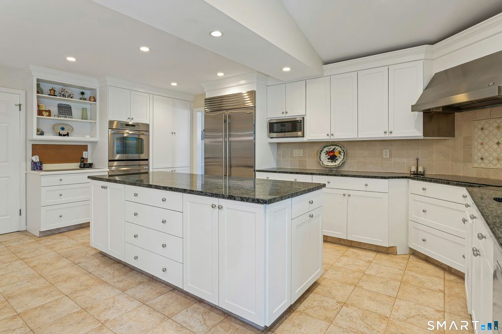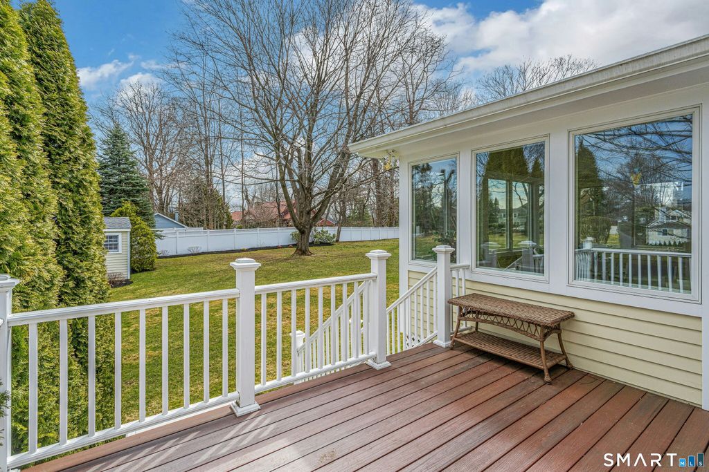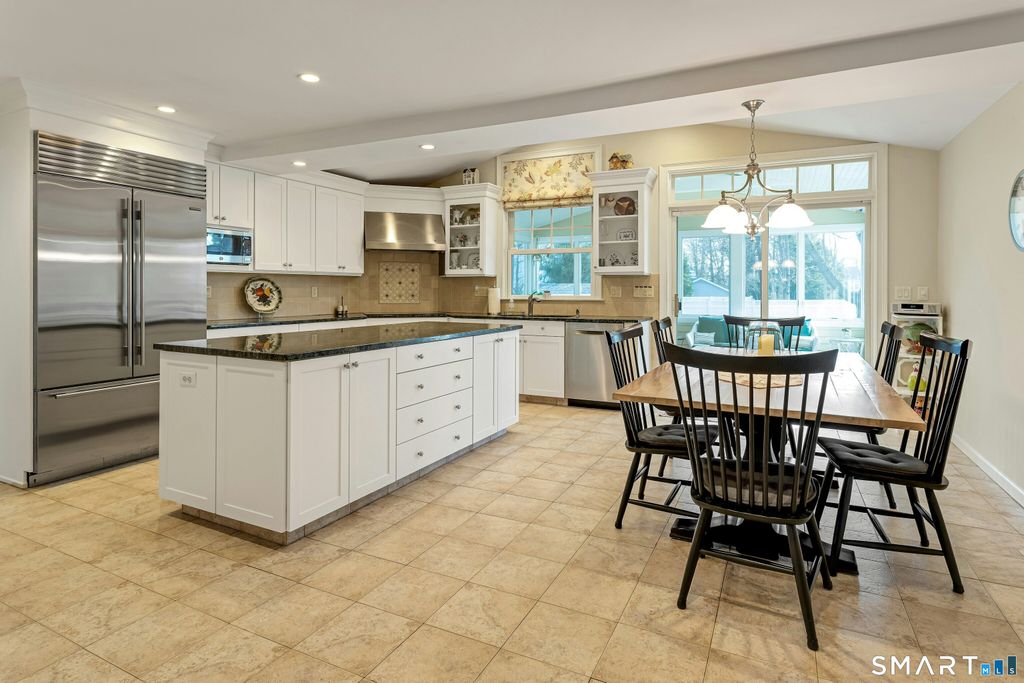 Meticulously maintained Colonial situated on a quiet cul-de-sac in the highly desirable Glenville section of Greenwich. This exquisite home offers exceptional comfort, functionality, and timeless appeal. Set on a level .47 acre lot with beautifully manicured grounds, the property has access to a private community association pool shared with just 11 homes. The home features a gourmet eat-in kitchen with a spacious center island, double ovens, Sub-Zero refrigerator, and abundant custom cabinetry. Sliding glass doors open to a three-season enclosed porch, stone patio, and Trex deck, creating a seamless indoor-outdoor living experience perfect for both everyday living and entertaining. The inviting family room has a stone fireplace, while a gracious formal dining room and elegant living room-each enhanced with beautiful window treatments-add to the home's refined character. The second floor offers 3 generously sized bedrooms with ample closet space, along with two full baths. The spacious primary suite features a vaulted ceiling, walk-in closet. a luxurious bathroom with double sinks, a jacuzzi tub, and a separate shower. The finished basement includes a spacious entertainment room with custom cabinetry, a separate private office and generous storage space. The heated two-car garage is enhanced with a polyaspartic floor and custom built-in shelving. Additional highlights include landscape lighting, in-ground sprinkler system, whole house generator and security system.