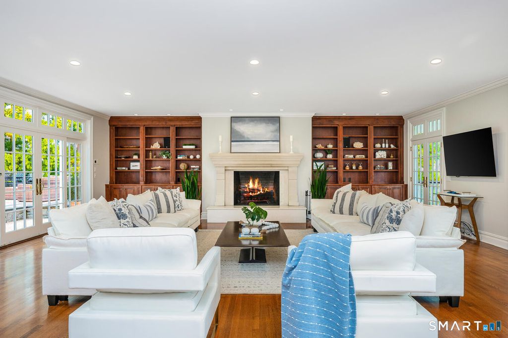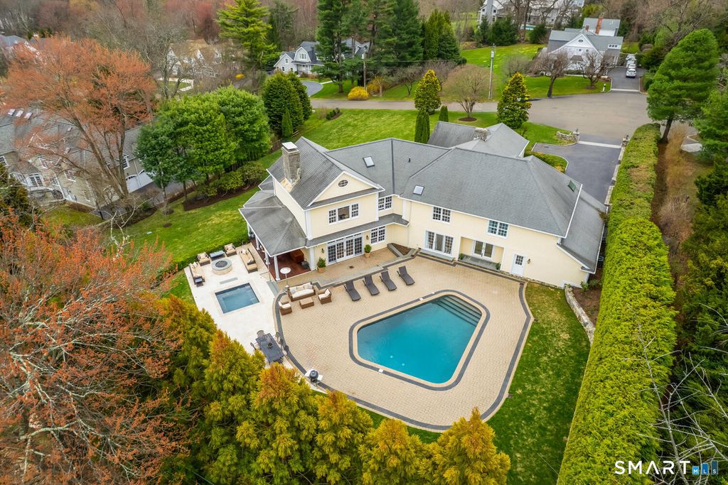 Set at the end of a coveted Fox Hill cul de sac on a private 1 acre lot, this spectacular 5 bedroom, 6 bath home offers an exceptional lifestyle defined by luxury, comfort, and effortless entertaining. Completely redesigned, the home is surrounded by open, beautifully manicured grounds with a premium lawn and expansive feel, combining privacy and serenity with a setting that feels both special and inviting. Designed for modern living, the home features four fireplaces, a stunning chef's kitchen with soaring ceilings, a statement center island, and high end appliances, as well as a private home office, theater room, gym with sauna, and a first floor in law suite with full bath. Outside, the resort style backyard is the ultimate private retreat, complete with a pool, hot tub, outdoor fire pit, and expansive mahogany deck for seamless indoor outdoor living. Warm, inviting, and beautifully designed, this is a rare opportunity to own a private oasis in one of Darien's most sought after locations.