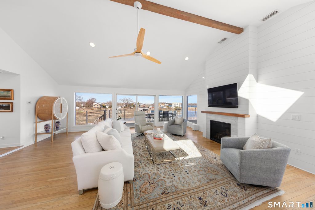 Discover your coastal sanctuary, with beautiful Long Island Sound views, at 9 Marsh Road on Saugatuck Shores - a hidden gem off the Westport coastline in a serene waterfront community. Sited on a private 0.23-acre parcel, this FEMA compliant home is expertly remodeled and features an open floor plan, two fireplaces, hardwood flooring, and an updated eat-in kitchen with a large island, walk-in pantry & updated appliances. Offering 4 bedrooms and 3 full baths, there's ample space for family and guests. The primary bedroom features an oversized, walk-in, closet & a large bathroom with spa tub, stall shower & double sinks. The sun-filled family room with soaring ceilings and walls of windows capture stunning vistas and offers direct access to exceptional outdoor living with expansive Ipe deck and sleek marine railings ideal for al fresco dining, bird watching & sunset gatherings. A private, fully fenced yard, outdoor shower, whole-house generator, two-car garage, and enclosed storage ensure comfort and convenience year-round. Embrace the island lifestyle: stroll to Canal Beach, launch kayaks or paddleboards, or sail from nearby (private) Cedar Point Yacht Club. Just minutes away, enjoy Westport's boutique shopping, gourmet dining & the Main Metro-North train station in Saugatuck for effortless commutes to Manhattan. 9 Marsh Road offers the ultimate blend of tranquil coastal charm in one of Connecticut's most coveted communities - also renowned for its award-winning public schools