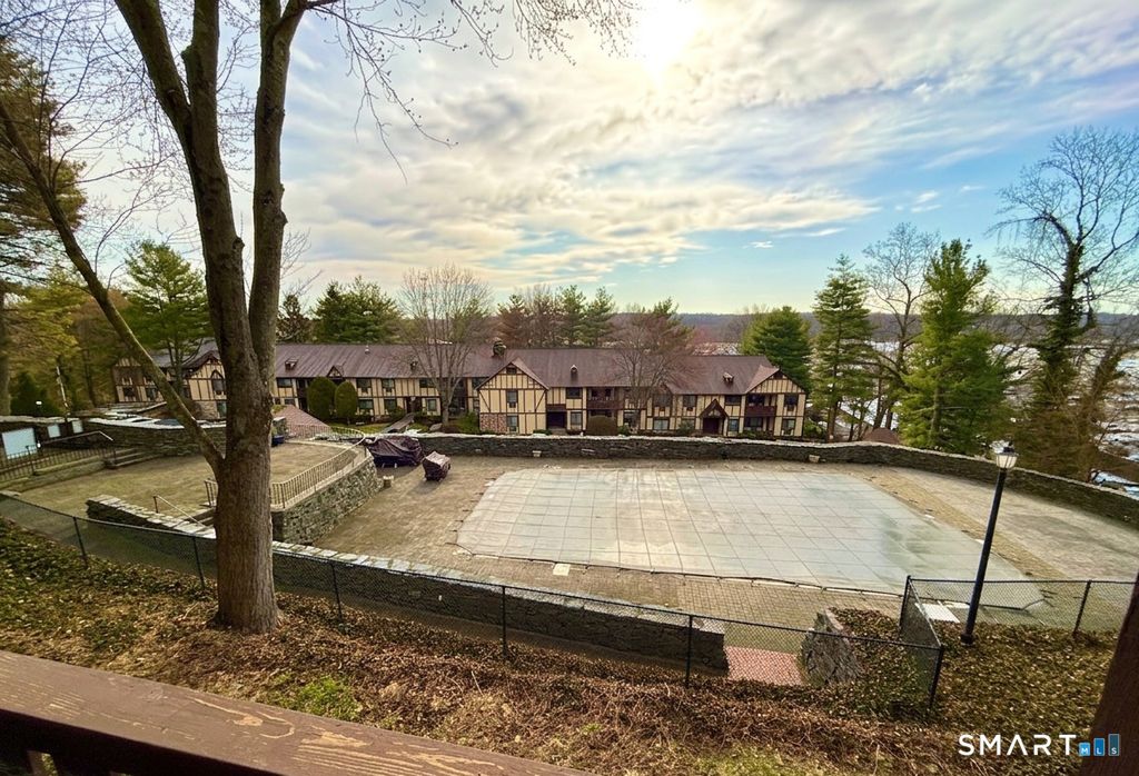 Tucked all the way at the very end of the complex, this lower-level ranch-style unit offers the kind of peaceful setting buyers always say they want... and rarely actually find. Overlooking the pool with seasonal views of the Housatonic River, breathtaking sunrises, and stunning fall color, the back deck is the kind of spot that makes morning coffee feel a little more expensive. Inside, the kitchen brings the charm with butcher block countertops, a farmhouse sink, and tiled backsplash, while the bright living room opens seamlessly to the deck for that easy indoor-outdoor vibe. The full bath is stylishly finished, the primary bedroom offers a comfortable retreat, and the second bedroom-compact, full of character, and listed on tax records-adds flexible bonus space. Add in in-unit laundry, gas heat, cooling, two parking spaces, and an HOA that covers the big stuff like heat, hot water, snow, trash, pool, and more... and suddenly this hidden little gem starts looking very hard to ignore. Just minutes to the Merritt Parkway and Route 8, but it feels like a quiet escape.