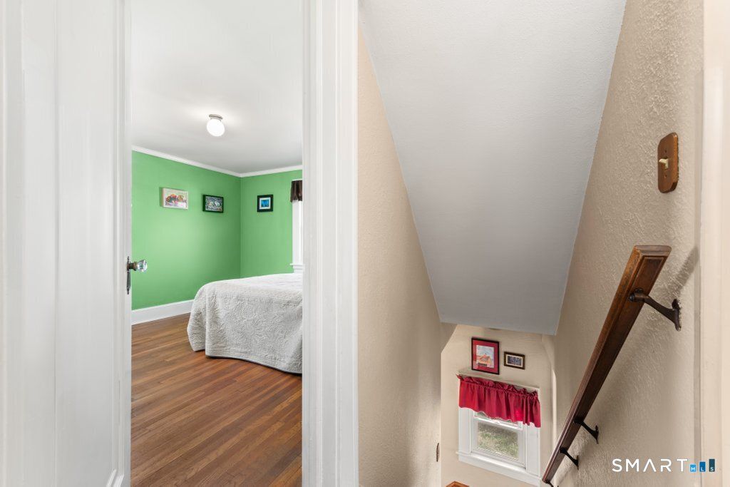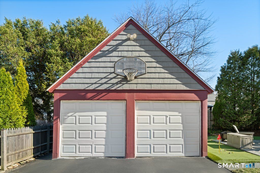 Set in Stratford's sought-after Paradise Green neighborhood, this charming vintage Colonial offers a location that is hard to beat-walkable to the Green, close to a neighborhood pond, and tucked into a quiet, desirable area. With inviting curb appeal, fresh exterior updates, and a backyard featuring a small putting green, this home blends character and comfort inside and out. A newly updated two tiered deck overlooking the yard is sure to be your go to summer spot. Lovingly maintained by long-time owners, the home is filled with timeless details including original molding, hardwood flooring, vintage door knobs, and a cozy fireplace in the living room. A sun porch just off the living room offers a bright place to relax, while the dining room sits conveniently beside the eat-in kitchen with skylight. Hardwood flooring runs through most of the main level, which also includes a convenient half bath. Upstairs are three bedrooms, all with hardwood floors, and a spacious full bath with tub. The finished attic provides great flex space for a home office, playroom, or studio. A basement offers storage or workshop potential, and the detached two-car garage adds even more utility. Recent updates include roof, siding, 200 Amp service, windows, deck and natural gas boiler. A special home in a beloved neighborhood