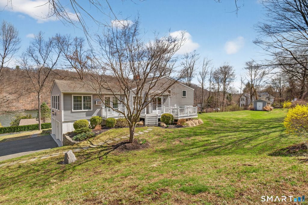 Welcome to this 5 bedroom, 2.5 bath home sited on 2 plus acres with sweeping, panoramic views of beautiful Lake Lillinonah in Brookfield, Connecticut. Meticulously maintained by its owners, the front of the home is framed by a classic stone wall with a row of Peonies and manicured landscaping. This home has a versatile floor plan that easily accommodates single family living, in-law arrangements, or home office needs. Beautiful refinished, hardwood floors extend throughout the main living room, dining area & upper-level bedrooms. The main living room features a vaulted ceiling, fireplace and a large bay window that captures natural light and showcases stunning lake views in every season. The year round sunroom is surrounded by walls of windows creating a bright inviting space for entertaining. The eat-in kitchen features a tile floor & vaulted ceiling with a french door leading out to the deck. The upper level features three spacious bedrooms & 1.5 baths. Just a few steps down, two additional bedrooms share a full bath. A second fireplace warms the lower level family room, complete with built-in book shelves & offering an additional inviting living space. Residents have the option to join the private neighborhood beach association, offering direct access to the lake. With it's welcoming spaces, flexible layout & breathtaking scenery this is a place you'll be proud to call HOME! Truly a special property!