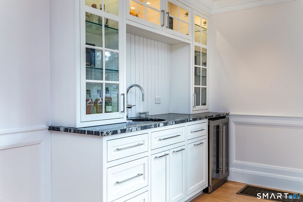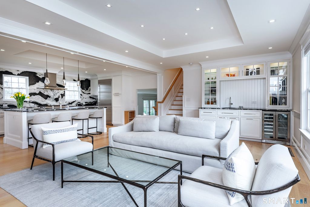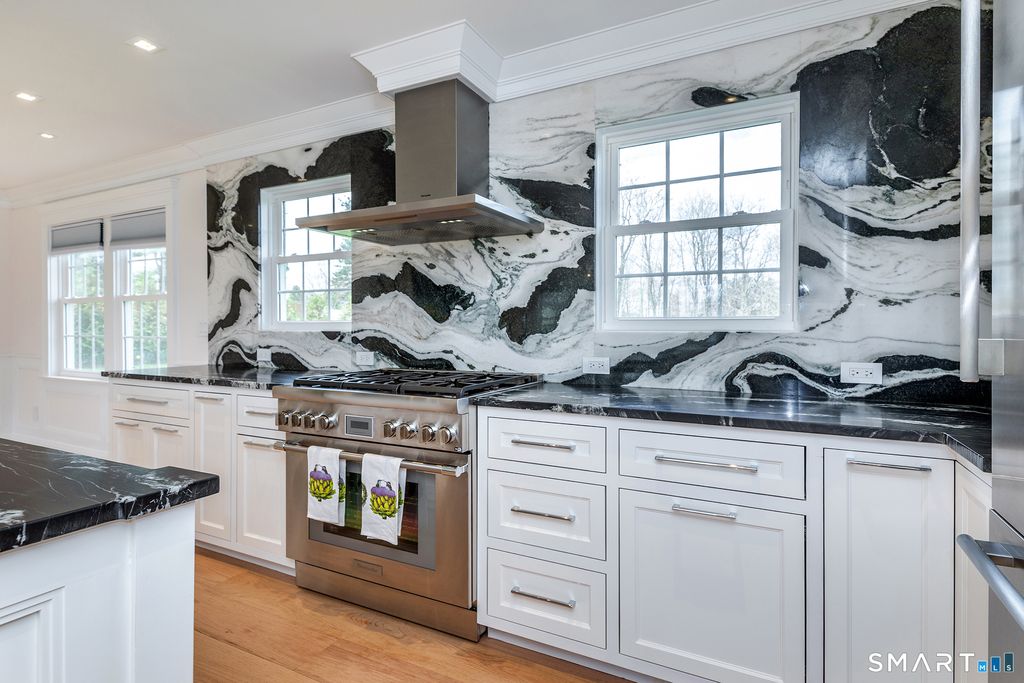 Beautifully renovated 4-bedroom, 3 full bath split-level, thoughtfully rebuilt with exceptional craftsmanship and high-end finishes throughout. At the heart of the home is a stunning great room that seamlessly blends the eat-in kitchen and family room-perfect for everyday living and effortless entertaining. The chef's kitchen impresses with custom maple cabinetry, marble backsplash, a leathered marble island, and top-of-the-line Thermador stainless steel appliances. The adjoining family room is both inviting and sophisticated, featuring custom built-ins, a wet bar, and a gas fireplace with marble surround. The entry level offers a welcoming living room with a stone wood-burning fireplace, home office, and a full bath. Upstairs, four well-proportioned bedrooms include a serene primary suite with walk-in closet and a beautifully appointed en-suite bath. Additional highlights include custom millwork, new systems, and energy-efficient upgrades, offering modern comfort with timeless style. Step outside to your own private entertaining oasis with multiple granite patios, a level lawn, and a fully refurbished in-ground pool. Bethel offers a welcoming small-town feel, top-rated schools, scenic parks, nearby hiking trails, and a charming, walkable downtown with diverse dining options.. Located in Northern Fairfield County, just 1.3 miles to the train station and approximately a 90-minute drive to New York City.