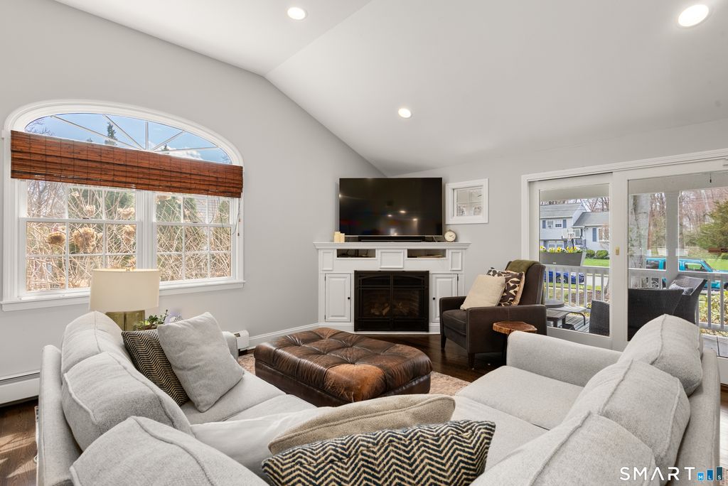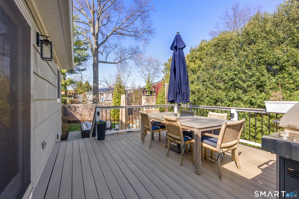 Tucked away on a quiet cul-de-sac in Fairfield's highly sought after University area, this meticulously maintained home offers an exceptional blend of privacy, prime location, and everyday comfort. From the moment you arrive, the home's striking curb appeal and inviting front porch welcomes you. Designed to capture seamless indoor-outdoor living, the main level features a sun drenched living room with soaring cathedral ceilings and a cozy gas fireplace. The recently updated kitchen showcases crisp white cabinetry, stainless steel appliances and quartz countertops, flowing effortlessly into the dining area. Step outside to a maintenance free Timber-tech deck overlooking your own private retreat. The backyard is a true standout, offering a beautifully designed oasis complete with a bluestone patio, stone outdoor fireplace, privacy cedar fencing, and professionally landscaped mature trees and shrubs, all enhanced by a full irrigation system for easy maintenance. Upstairs, 3 spacious bedrooms provide comfortable accommodations, while the lower levels offer exceptional flexibility for a home office, playroom, or gym. With major updates already completed including a brand new central air system, newer gas furnace, and newer roof, this home delivers complete peace of mind. You're just a short walk to schools and minutes from the train, beaches, and Fairfield's vibrant downtown. This is a rare opportunity to own a truly turnkey home in one of the area's most desirable locations.