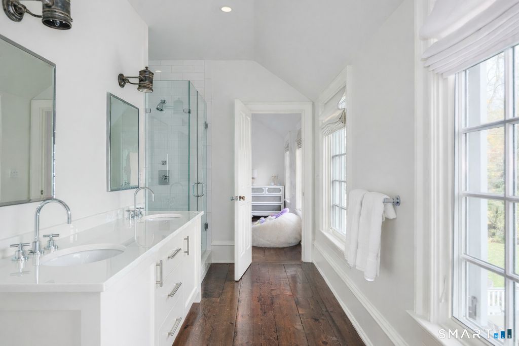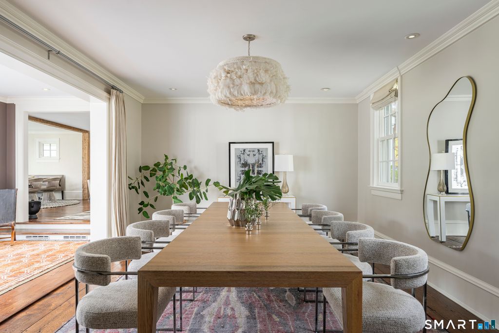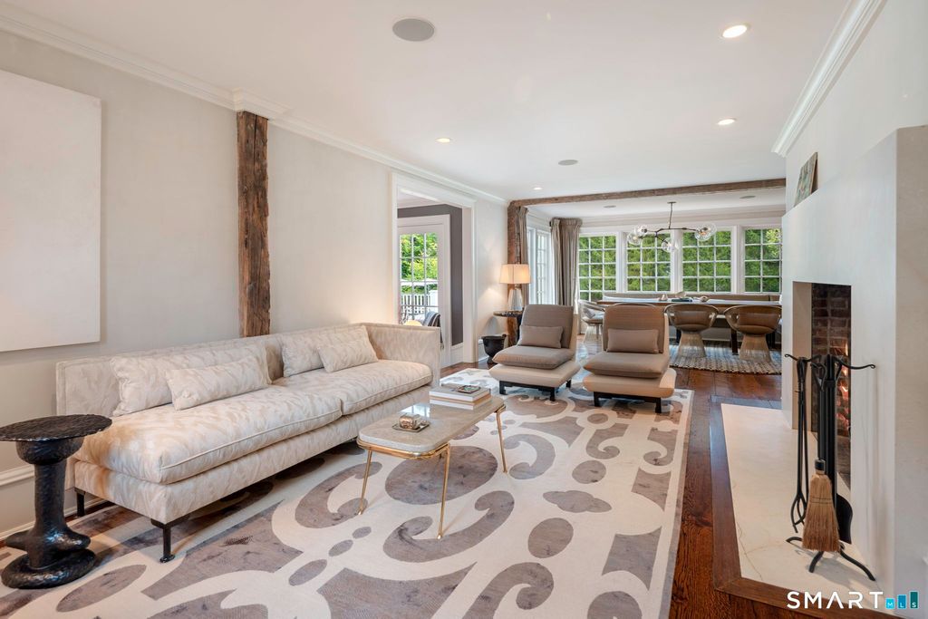 Set along one of Hollow Tree Ridge Road's most desirable stretches, 366 Hollow Tree Ridge Road is a masterfully restored and expanded residence that artfully blends historic character with refined modern living. Reimagined by renowned builder Bo Malpass, the home offers 6 bds, 5.1 baths across 7,356 sq feet. Original character is preserved through antique beams and wide plank wood floors, while modern updates introduce a seamless flow and elevated functionality. Interiors curated by Kristen Fine enhance the home's cohesive aesthetic with understated luxury and timeless finishes. Sun-drenched living spaces unfold effortlessly, creating an ideal setting for both everyday living and elegant entertaining. The custom-designed Poggenpohl kitchen serves as the heart of the home, complemented by multiple inviting gathering spaces. A spacious primary suite and well-appointed secondary bedrooms provide comfort, scale, and flexibility. Set on 1.75 acres of beautifully landscaped grounds, the property features a Gunite pool and a charming guest cottage connected by a breezeway ideal as an in-law suite, private retreat, or dedicated work-from-home space. Ideally located with convenient access to town, train, and Darien's top-rated schools, this exceptional offering presents a rare opportunity to own a turnkey home where historic integrity and modern sophistication converge.