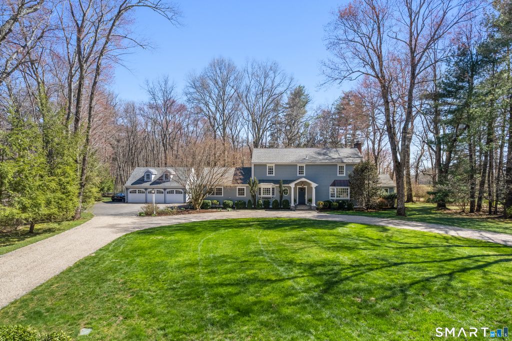 This is the One! A beautifully updated four-bedroom Colonial set on a quiet street in coveted North Darien, offering the perfect blend of classic charm and modern living. The home features gracious formal spaces including a sun-filled living room, elegant dining room, and inviting den. At the heart of the home, a stunning updated kitchen opens seamlessly to a spacious family room, creating an ideal layout for everyday living and entertaining. A playroom and dual home offices provide the flexibility today's buyers are looking for. Perfectly positioned on the Wee Burn Country Club, the property enjoys sweeping, picturesque views that set it apart. Outdoor living is just as exceptional, with a beautifully designed stone patio featuring sitting walls and a fireplace-perfect for gathering year-round-plus a large, flat yard ideal for play and recreation. A detached three-car garage is complemented by a fantastic space above-perfect as a media room, private office, or creative studio. A rare opportunity to own in an unbeatable location with both privacy and views.