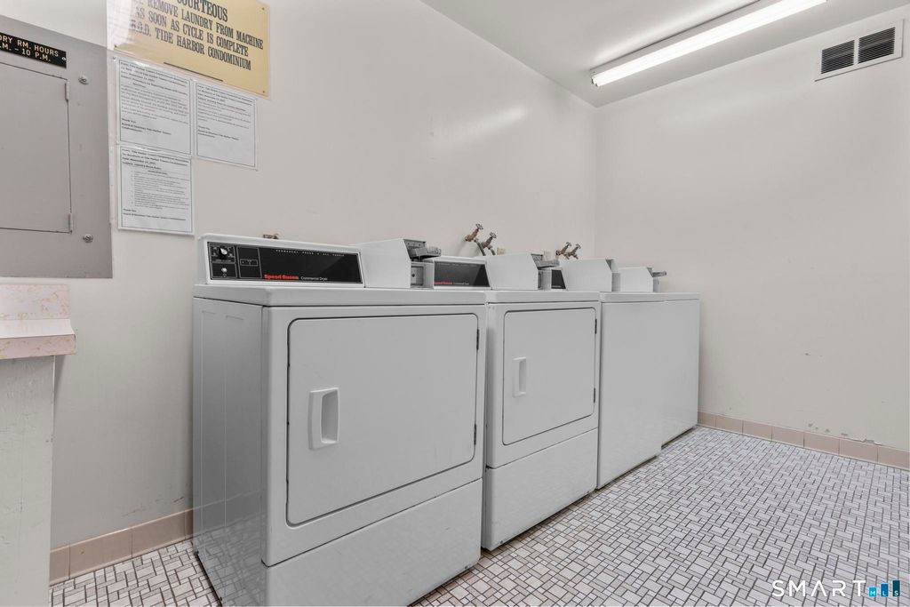 Well-maintained 1-bedroom, 1-bath condominium offering 1,088 sq ft of living space and a functional single-level layout. The unit features a spacious living room with a floor-to-ceiling window that provides great views and fills the space with tons of natural light, along with access to a private balcony/deck. The layout also includes a dining area and a well-equipped kitchen with electric range, refrigerator, and dishwasher. The primary bedroom offers ample space, walk-in closet, and the unit provides convenient everyday living. Located in a quiet, private waterfront complex, this home offers a peaceful setting while still being close to everything. Additional features include common laundry available on each floor, a full shared basement, and one assigned parking space. Located in The Harbor Towers complex, this property offers convenient access to shopping, dining, and major roadways. Professionally maintained common areas and grounds add to the overall appeal.