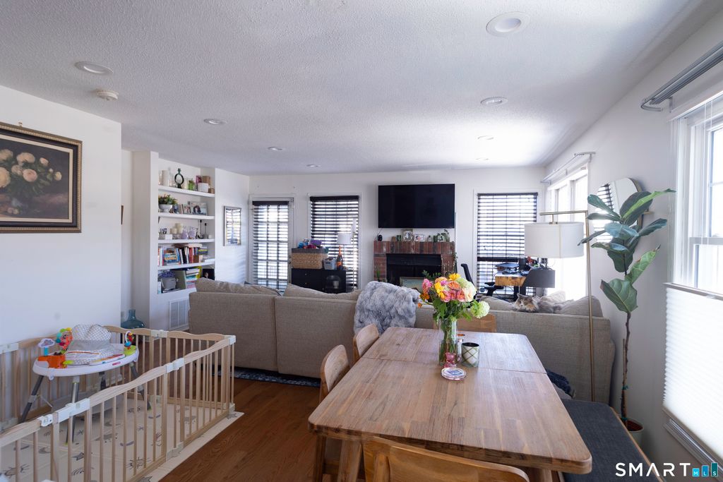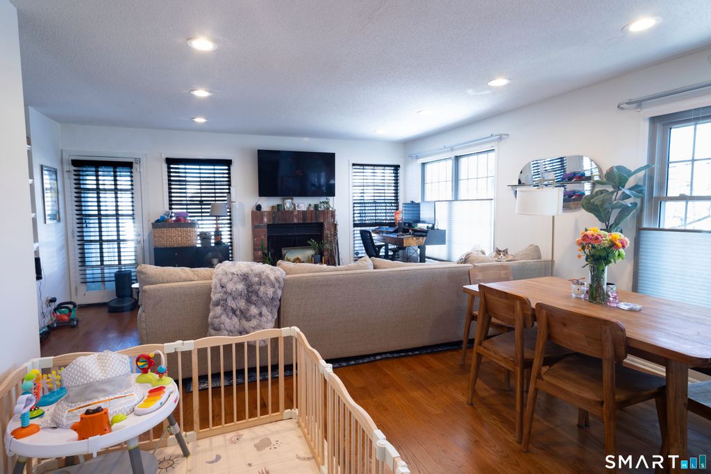 Enjoy all Greenwich has to offer with this end unit condo conveniently located close to the Metro-North station, Greenwich Ave, and I95. 3 floors of space to spread out and relax. Main level has a wood-burning fireplace, dining area, kitchen with ss appliances, and large windows with plenty of natural light. Includes a private patio. Upper level provides a large primary bedroom with plenty of closet space and a full bath with tub and stall shower. 2nd bedroom has plenty of closet space and its own full bath. Pull down attic for more storage space. Lower level has laundry, plus another room which can be used as office or storage.
