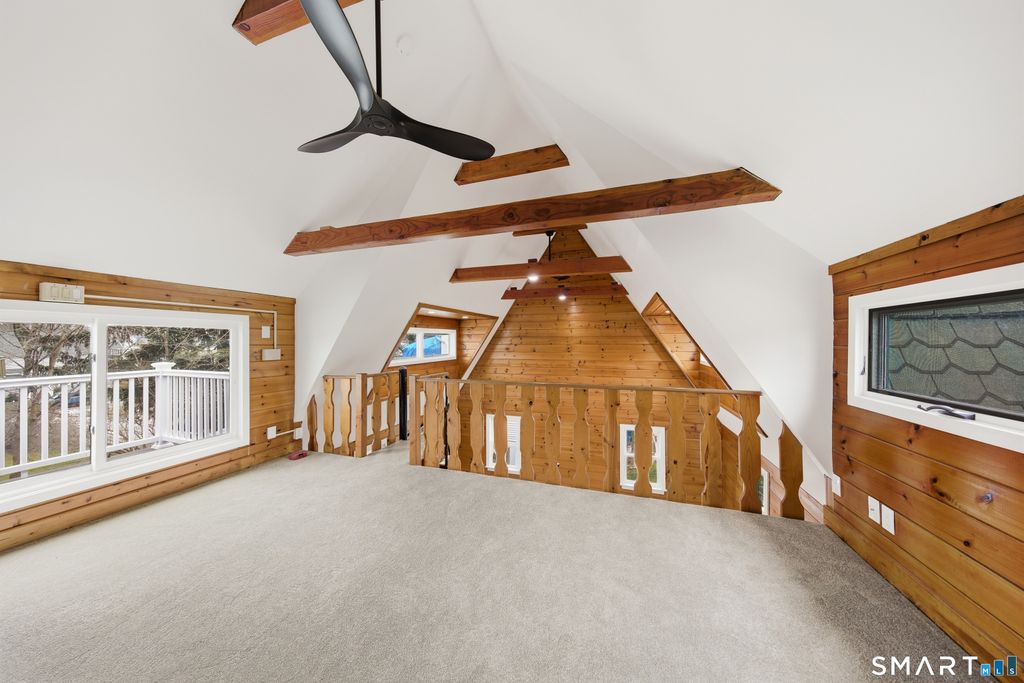 Tucked in Norwalk's Broad River neighborhood, this distinctive single-family home offers the charm of a ski chalet with the convenience of an in-town location. Soaring vaulted ceilings and abundant natural light define the main living space, creating an airy and inviting atmosphere. The recently updated kitchen features white quartz countertops and new stainless steel appliances, blending modern finishes with the home's warm character. The flexible layout includes a loft area with a private balcony, previously used as a sleeping space, while the home is town-designated as a one-bedroom. A finished walkout lower level adds valuable versatility, ideal for a home office, guest space, or alternative sleeping area. Enjoy peaceful views of Broad River Park just across the street, offering a sense of openness rarely found at this price point. A private driveway and rear patio provide added convenience and outdoor enjoyment. Ideally located near shopping, dining, I-95, and the South Norwalk train station. A rare opportunity to own a unique single-family home as a true alternative to condominium living-offering privacy, independence, and no HOA fees.