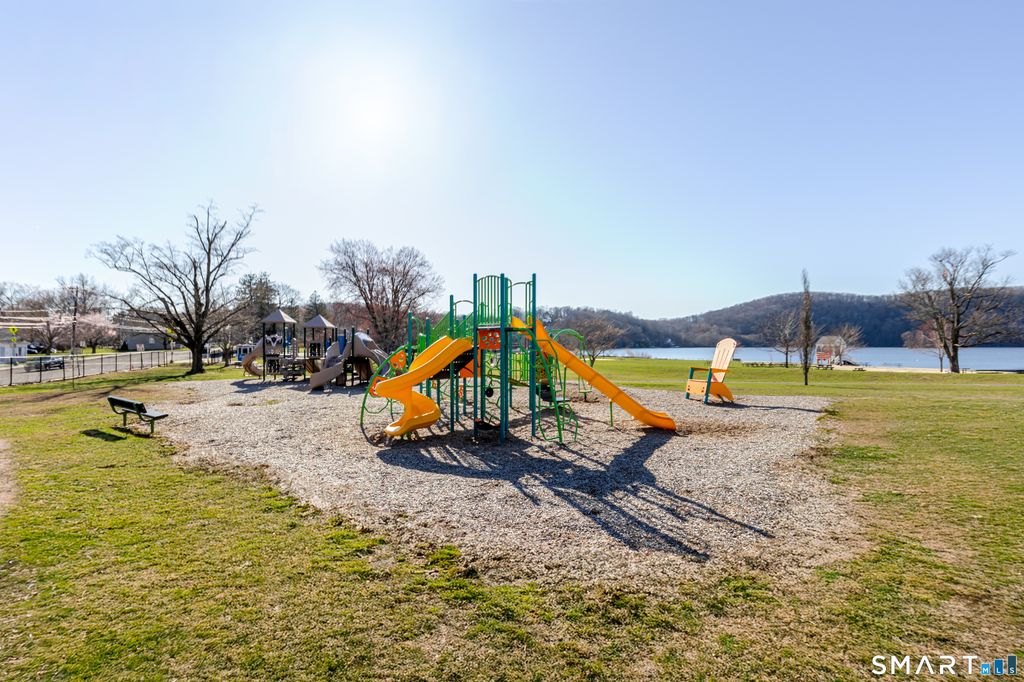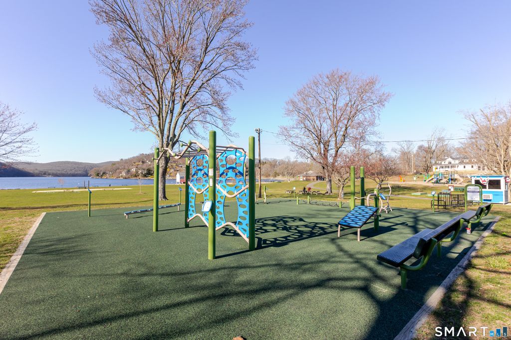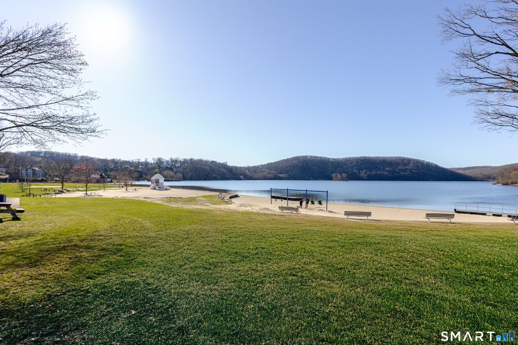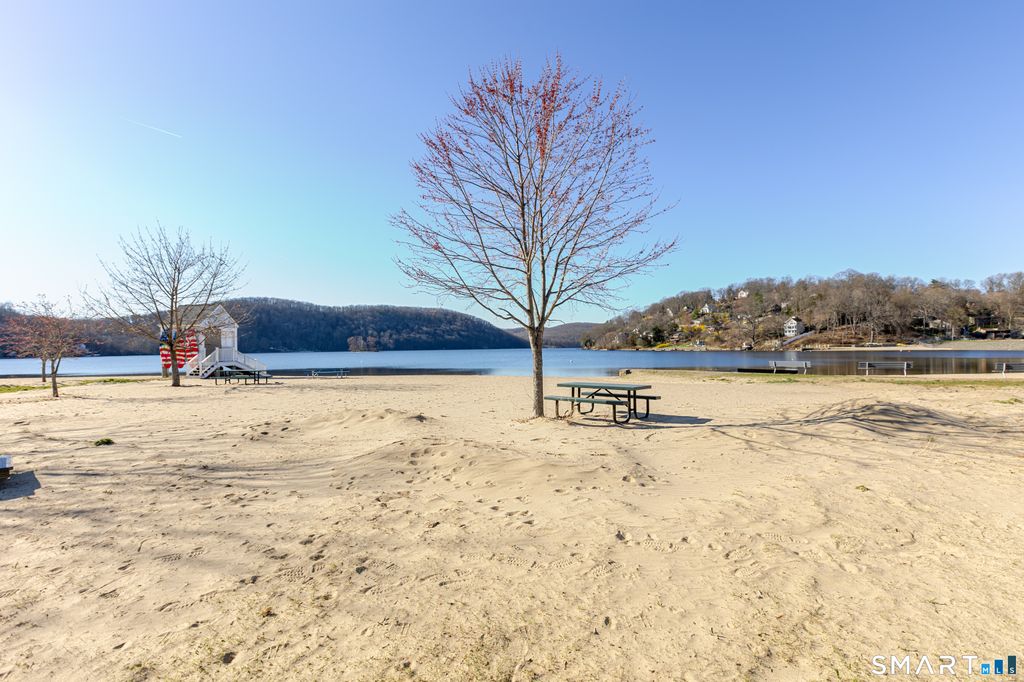 Turnkey gem in a vibrant lakeside community, this three-bedroom Cape with garage perfectly blends character with high-end modern updates in a desirable lake location! Exceptional curb appeal begins with a Belgian block front entrance that leads to the front porch. Inside, you will find a generous living room with gleaming hardwood floors, Crown molding, a brick-styled fireplace anchored by a natural wood mantle. This space flows seamlessly into a stunning, renovated dream kitchen featuring high-end appliances, quartz countertops, mosaic backsplash, farmhouse sink and a dedicated dining area. The main level offers convenient living with a primary and guest bedroom, both boasting ample closet space, served by a well-appointed full bathroom. The upper level hosts a private third bedroom characterized by airy vaulted ceilings and charming original built-ins. The backyard is a private oasis, featuring a custom blue-stone patio with exterior awning, an above-ground pool, storage shed, all backed by a privacy fence. Practicality meets peace of mind with a lower level offering storage and workspace, a 10-year-old Peerless furnace, a generator hookup, and new well pump. This home has vinyl siding, Harvey windows, new window shades, and the convenience of city sewer. This home is situated close to Candlewood Lake Town Park, which features a sandy beach, playground, boat launch and picnic areas. Minutes away from local favorites like Lakeview Pizza, shopping, schools and I-84 NY.